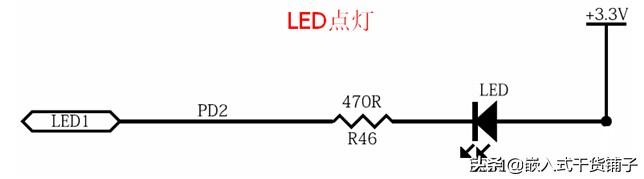 当2号管脚输出高电平3.3V时,二极管两端的电压基本相等,没有电压差,也就没有电流流过,所以LED处于熄灭状态。