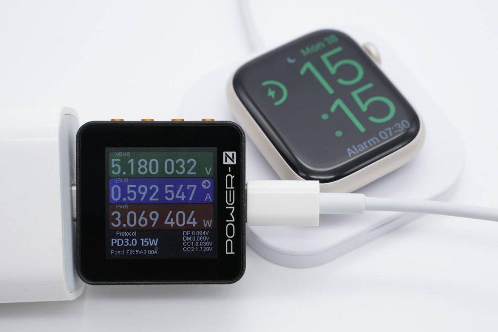 给苹果Apple Watch充电,测得充电功率约为3.07W。