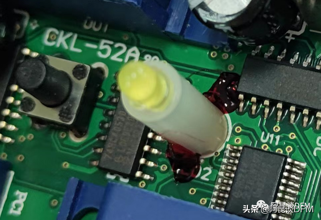 背面不知道是否焊接后用酒精洗过或是质量差的洗板水,因为明显发白。