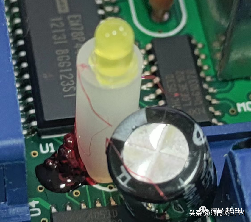 电解电容明显和封装不对,不知道是后期的临时更改,还是PCB设计时确实没有空间而将就的办法。