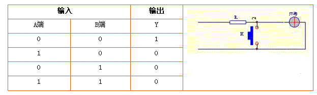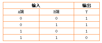 根据或门和非门的逻辑功能,可以列出与非门逻辑关系真值表。其逻辑功能的特点是:“当输入全为0,输出为1;只要输入有1,输出就为0”。