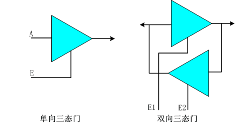 为减少信息传输线的数目,大多数计算机中的信息传输线均采用总线形式,即凡要传输的同类信息都走同一组传输线,且信息是分时传送的。在计算机中一般有三组总线,即数据总线、地址总线和控制总线。为防止信息相互干扰,要求凡挂在总线上的寄存器或存储器等,它的传输端不仅能呈现0、1两个信息状态,而且还应能呈现第三种状态——高阻抗状态(又称高阻状态),即此时好像它们的输出被断开,对总线状态不起作用,此时总线可由其它器件占用。三态门即可实现上述的功能,它除具有输入输出端之外,还有一控制端,请看下图。