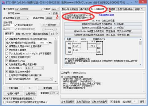 进行到这步读者可以直接关闭即可,因为这个安装包主要包括一些三星、意法半导体等等的高端处理器,而未包含 STC公司的单片机,那如何安装 STC公司的单片机,其实很简单,STC公司为了解决此问题,他们在自己的 STC-ISP软件上加入安装库的功能,读者只需进行简单的操作,就可以添加 STC单片机到 Keil5中。打开 STC-ISP软件,选择“Keil仿真设置”选项卡,如图 2-3的“1”所示,接着单价“2”所示的按钮,此时会弹出如图 2-4所示的 Keil5安装路径文件夹选择对话框,此时我们只需定位到安装目录(图中为笔者的安装目录,读者的自行设置)即可。