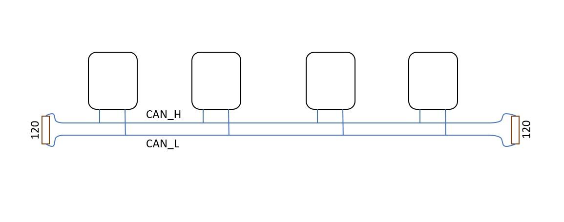 在CAN总线的两端要用120欧的电阻端接进行阻抗匹配,因为CAN总线长度一般会比较长,传输的信号速度快,特别是信号的边沿跳变部分频率很高。