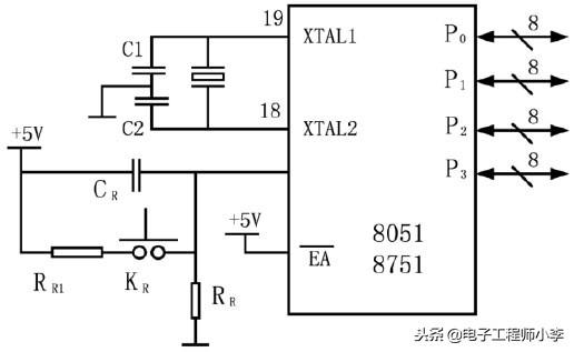 最小应用系统的功能取决于单片机芯片的技术水平。对于片内有ROM/EPROM的单片机,其最小应用系统即为配有晶振、复位电路和电源的单个单片机;对于片内无ROM/EPROM的单片机,其最小系统除了外部配置晶振、复位电路和电源外,还应当外接EPROM或EEPROM作为程序存储器用。