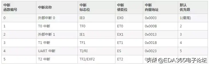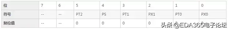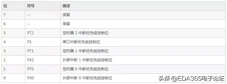 表1: IP——中断优先级寄存器的位分配(地址0xB8、可位寻址)