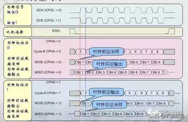 时钟极性CPOL是用来配置SCLK的电平出于哪种状态时是空闲态或者有效态,时钟相位CPHA 是用来配置数据采样是在第几个边沿: