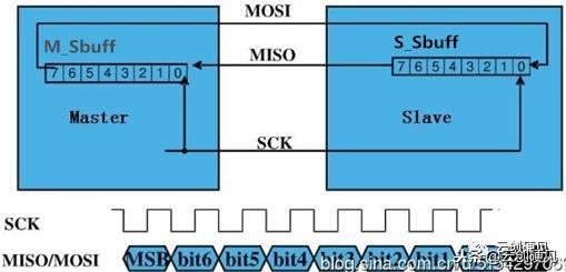 换个说法,SPI是一个环形总线结构,主要是在sck的控制下,两个双向移位寄存器进行数据交换。对于主机来说,上升沿发送、下降沿接收、高位先发送。