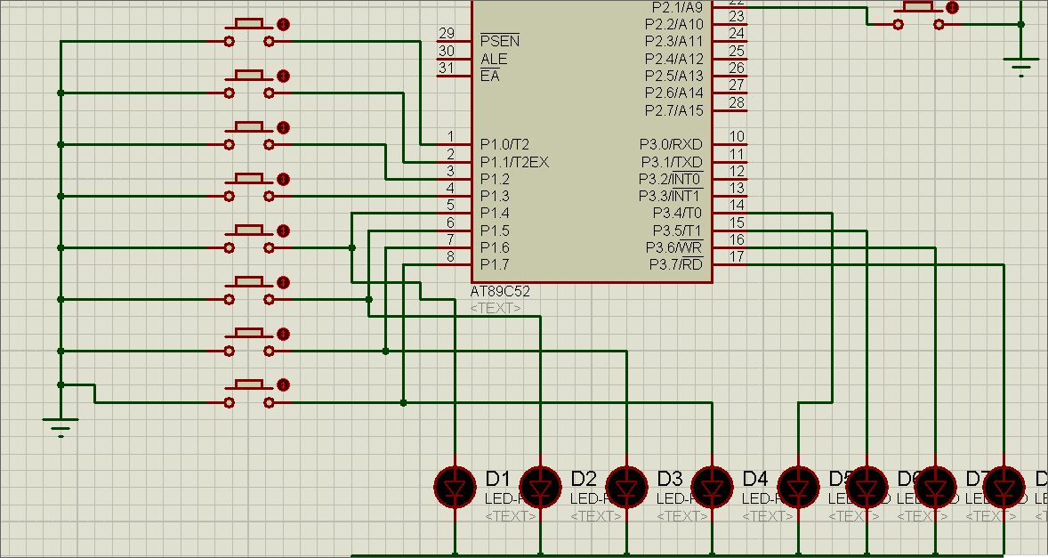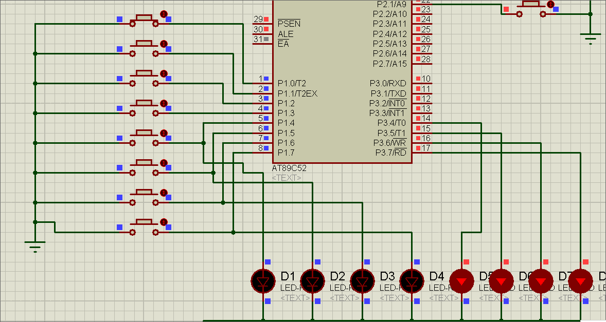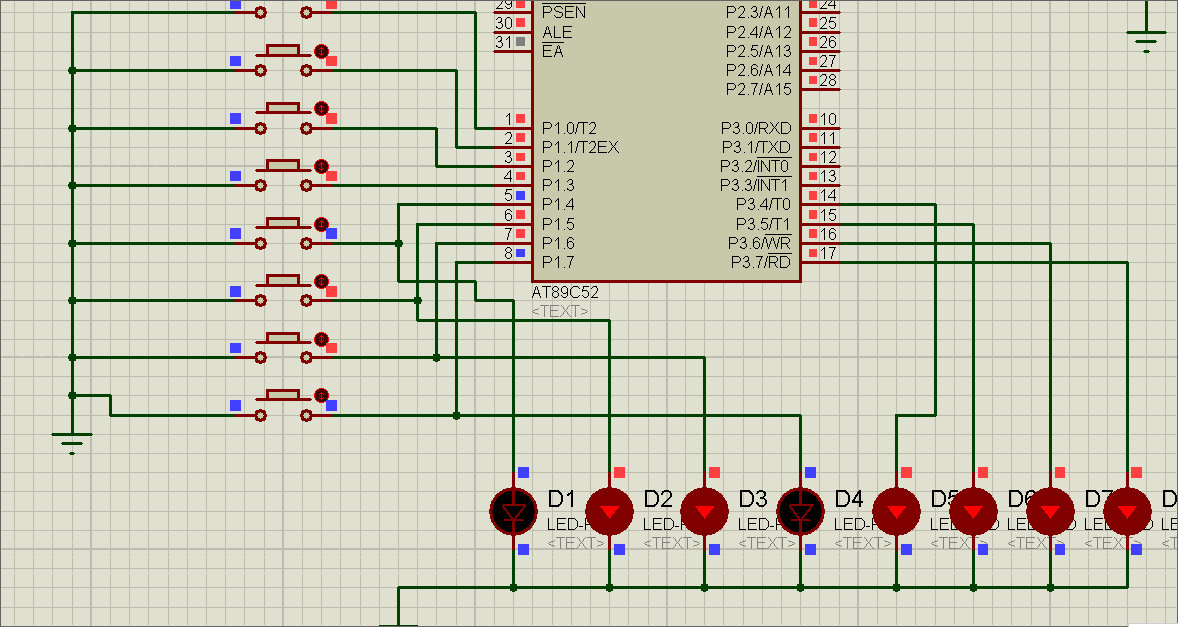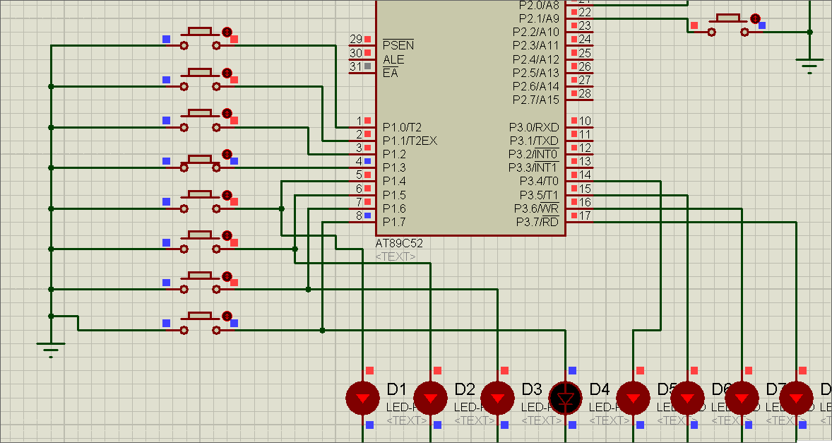 对电路稍作修改,把四个LED灯泡接到了P1的高四位上。