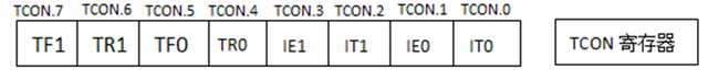 寄存器TCON的高四位一共定时器/计数器的启动开关和中断时的标志位,低四位为外部中断触发控制位和外部中断请求标志位,如下图: