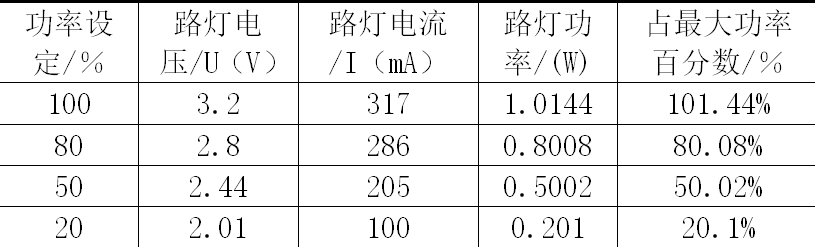 在功率设定完成后,电路中的电流瞬间改变到表中的测试值,表明功率调节功能可以在瞬间完成;由表中可以看出,误差最大的是100%功率档,为1.44%;误差最小的是50%功率档,为0.02%,精确度非常高。