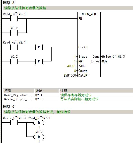 注意:建议每一个读写功能(即 MBUS_MSG)都用上一个 MBUS_MSG 指令的 Done 完成位来激活,以保证所有读写指令循环进行(见例程)。