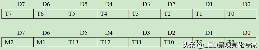 8155的定时器为14位的减法计数器,对输入脉冲进行减法计数,定时器由两个字节组成,其格式如下:
