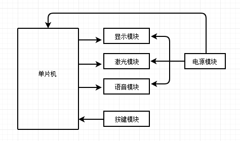 就看系统的输入输出。输入:两节AAA电池、按键、激光测距模块输出:屏幕显示距离、激光测距模块