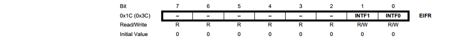 4.EIFR:外部中断标志寄存器。作用:可以用来检测是不是触发中断请求了。