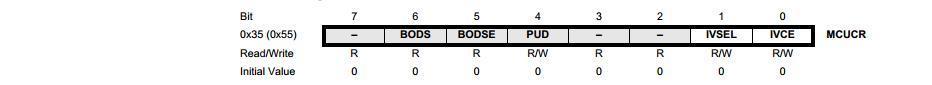 MCUCR:MCU控制寄存器。作用是,其实就是控制中断向量表的位置的。