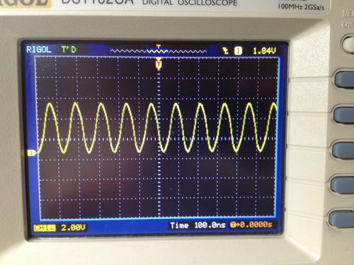 晶振是晶体振荡器的简称,在电气上它可以等效成一个电容和一个电阻并联再串联一个电容的二端网络。电工学上这个网络有两个谐振点:高频和低频,其中较低的频率是串联谐振;较高的频率是并联谐振。由于晶体自身的特性致使这两个频率的距离相当的接近,在这个极窄的频率范围内,晶振等效为一个电感,所以只要晶振的两端并联上合适的电容它就会组成并联谐振电路。这个并联谐振电路加到一个负反馈电路中就可以构成正弦波振荡电路,由于晶振等效为电感的频率范围很窄,所以即使其他元件的参数变化很大,这个振荡器的频率也不会有很大的变化。晶振起振波形如下所示: