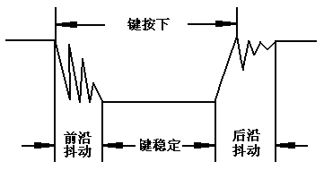 按键在按下和抬起时,都会出现短暂的抖动,称之为前沿抖动和后沿抖动,他们持续的时间大致在5-10毫秒,键稳定时间会在100毫秒以上,就人的操作速度来看,键稳定的时间不会低于100毫秒,因为,1秒十次的操作,估计手都受不了。除非科幻世界或武侠世界的人。