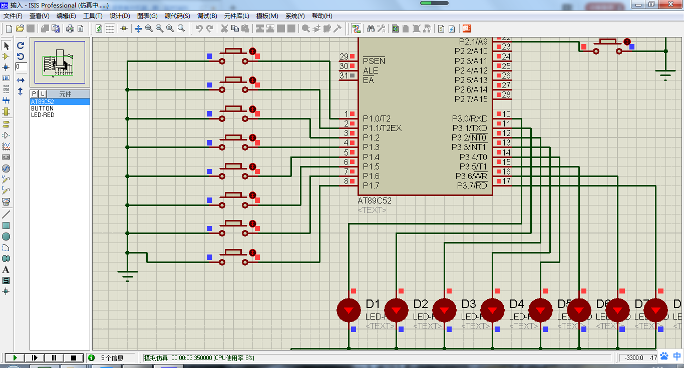 这是软件的初始状态,所有端口都是高电位,我们按下P10.