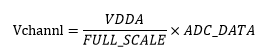 这里VDDA是一个未知的值,所以你可以将1式带入,这样你就可以得到一个计算每个通道ADC输入电压的公式