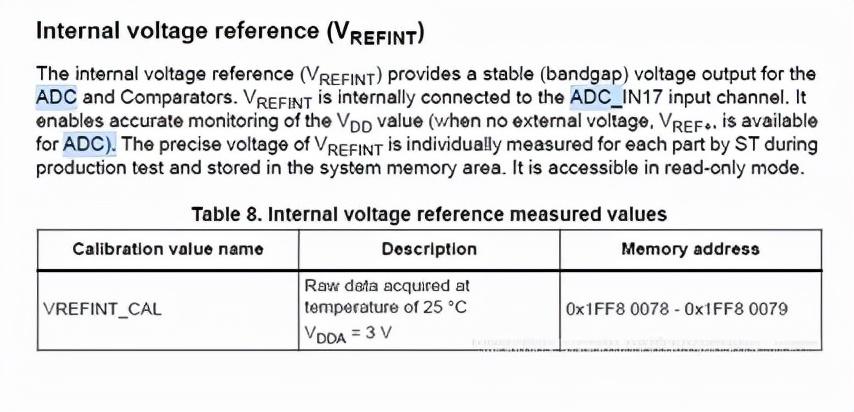 在STM8L151芯片的内部,有一个固定的内部参考电压,ST的技术手册里命名为VREFINT