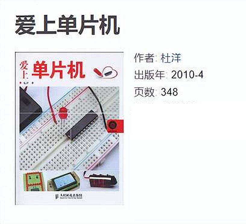 在这天,我像往常一样走进书店,随手抽出一本往下看,嗯,一个黑块,插进了一个白色的面包板中,面包板还插着几个小灯,然后在电脑上输入一串代码,等到再接通的时候小灯竟然神奇的闪烁起来了,随后作者有让这个黑块唱歌,遥控洗衣机,简直给我打开了新世界的大门。这本书叫《爱上单片机》杜洋老师写的,我瞬间意识到,DVD之所以可以放出图像,遥控器可以控制电视,可能关键就在这。