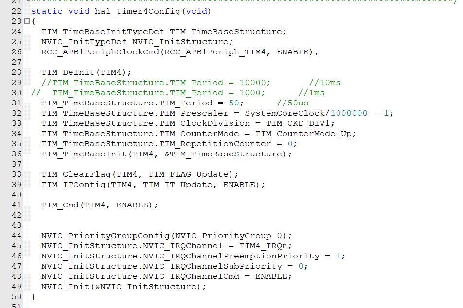 我们的定时频率配置的是50us,是因为我们产品有的功能最短需要50us的定时。