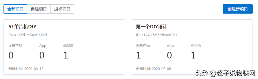 首先进入我们自己的阿里云生活物联网平台,然后创建项目,我们就创建一个51单片机DIY项目吧,以后所有51单片机相关的DIY设计,我们都加入到这个项目内。