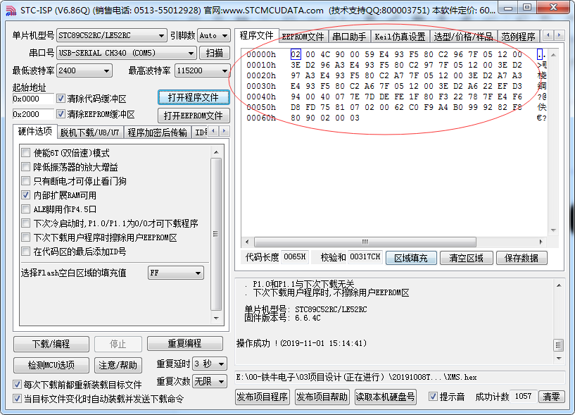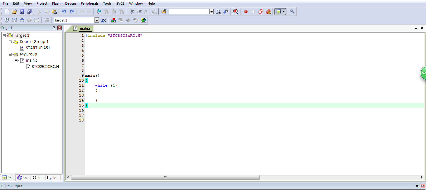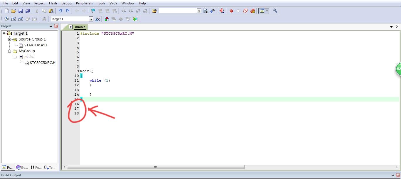 STC89C52xRC.h是STC89C52RC单片机的头文件,while (1){}是一个死循环,这是一个STC89C52RC单片机程序必不可少的两步,如果暂时不懂,那就先面对现实吧!少年!接下来就是保存文件,保存工程。