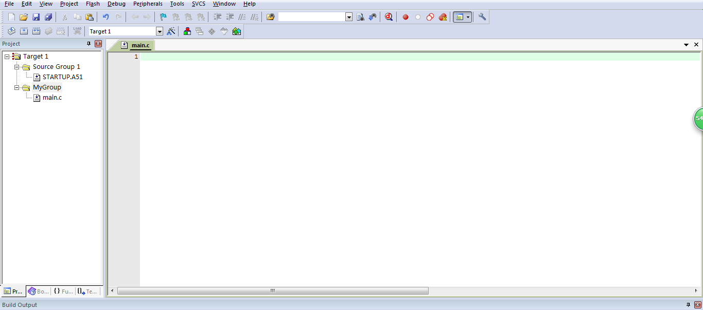 最好在左侧的Target 1下也新建一个MyGroup文件夹,把新建的文件点击保存,保存在刚刚建立的MyGroup文件夹下,文件名称main.c