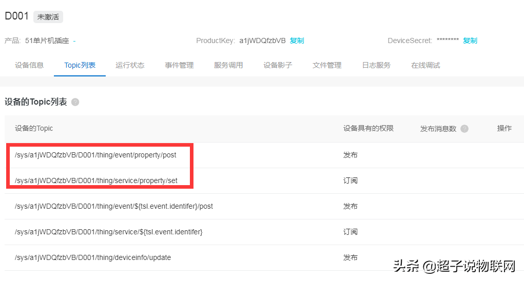 然后看第4和第5个字符串, 都是Topic主题,第4个set是用来接收控制开关命令推送的Topic,我们需要订阅它,第5个post是用来往服务器上传数据的,这次的实验post不是关键点。那么这两个Topic再那找呢?看下图。