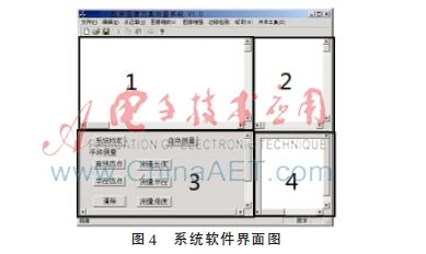 系统测量软件是在Windows平台下,利用Visual C++6.0语言编制,为操作人员提供实用的操作窗口。如图4所示,系统软件界面分为4部分:区域1显示原图像,区域2显示处理后的标注图,区域3显示快捷命令按钮,区域4显示精确的几何参数。