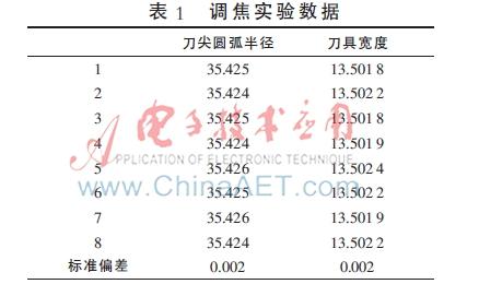 在刀具测量系统中,对选取的同一刀具依据调焦、离焦、调焦的过程进行多次测量,提取刀具测量数据如表1所示。