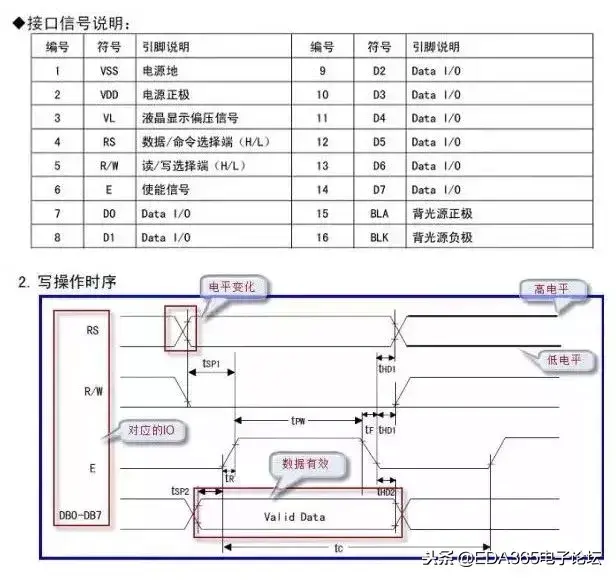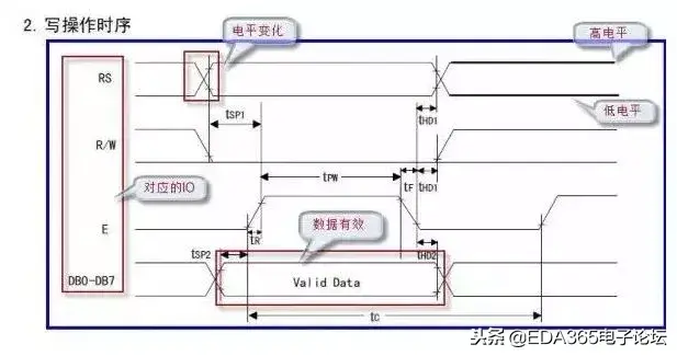 实际上写指令和写数据,差别仅仅在于RS的电平不一样而已。以下是LCD1602的时序图: