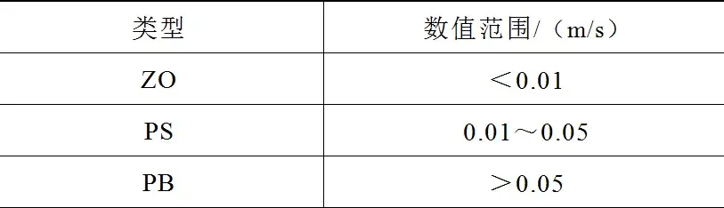 在起动过程系统中,设速度差量的模糊语言变量为EV,加速度差量的模糊语言为EA,起动过程的模糊语言为U。经模糊化处理后,模糊语言集为{ZO, PS, PB},速度差量语言描述为{偏差小, 偏差中, 偏差大}。其偏差范围见表1。
