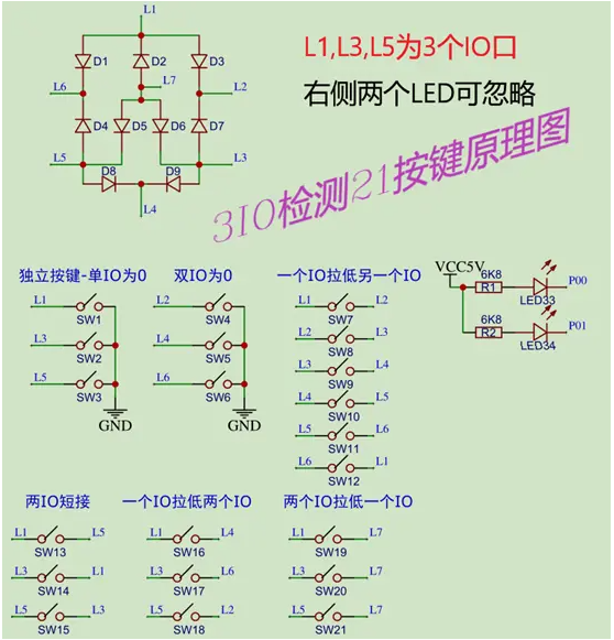 特别说明L1,L3,L5为3个IO口连接点。