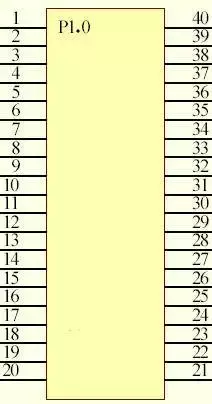 ❑P1口:即P1.0~P1.7(Pin1~Pin8),输入输出脚,8位准双向并行I/O口。P1口内部已经具有上拉电阻,为8位准双向I/O口,能负载4个TTL;在Flash编程和校验时,定义为低8位地址线。