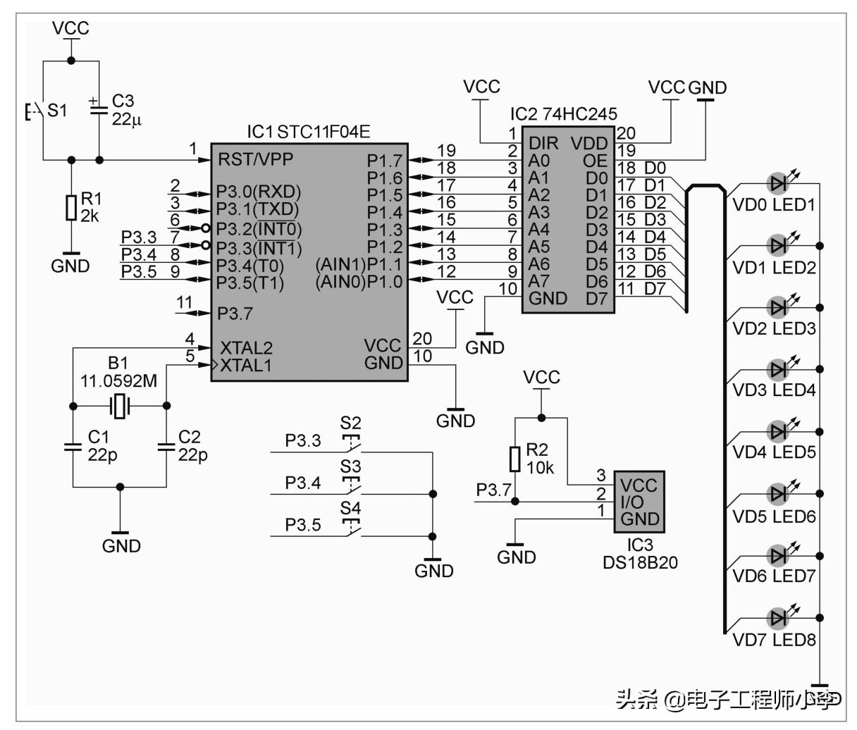 这次设计的核心就是围绕温度传感器DS18B20和单片机EEPROM的应用。
