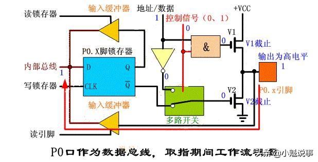 前面我们已将P0口的各单元部件进行了一个详细的讲解,下面我们就来研究一下P0口做为I/O口及地址/数据总线使用时的具体工作过程。