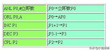 读-修改-写指令的特点是,从端口输入(读)信号,在单片机内加以运算(修改)后,再输出(写)到该端口上。下面是几条读--修改-写指令的例子。