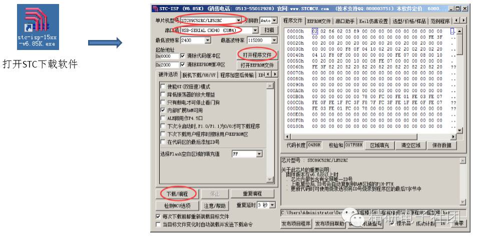 51系列单片机都可以使用串口下载程序,即ISP下载。串口分为电脑的串口和单片机的串口。每个单片机都有串口,外部表现为2个引脚,即RXD和TXD。以前,每个电脑上都有串口,现在,家用型电脑已经不配置串口,只有工控电脑还带有串口。但是,电脑不带串口并不会影响下载程序,你不必非要买一个带有串口的电脑。因为现在市面上,有一种线,叫做“USB转串口线”,它可以把你电脑的USB口变成串口,和以前电脑上的串口外表和功能一模一样。