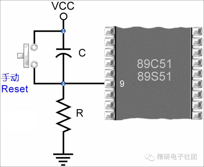 复位电路由电容串联电阻构成,由于“电容电压不能突变”的性质,可以知道,当系统一上电,RST脚将会出现高电平,并且这个高电平持续的时间由电路的RC值来决定。典型的51单片机当RST脚的高电平持续两个机器周期以上就将复位,所以适当组合RC的取值就可以保证可靠的复位。一般推荐C 取10μF,R取10kΩ。当然也有其他取法的,原则就是要让RC组合可以在RST脚上产生不少于2个机周期的高电平。