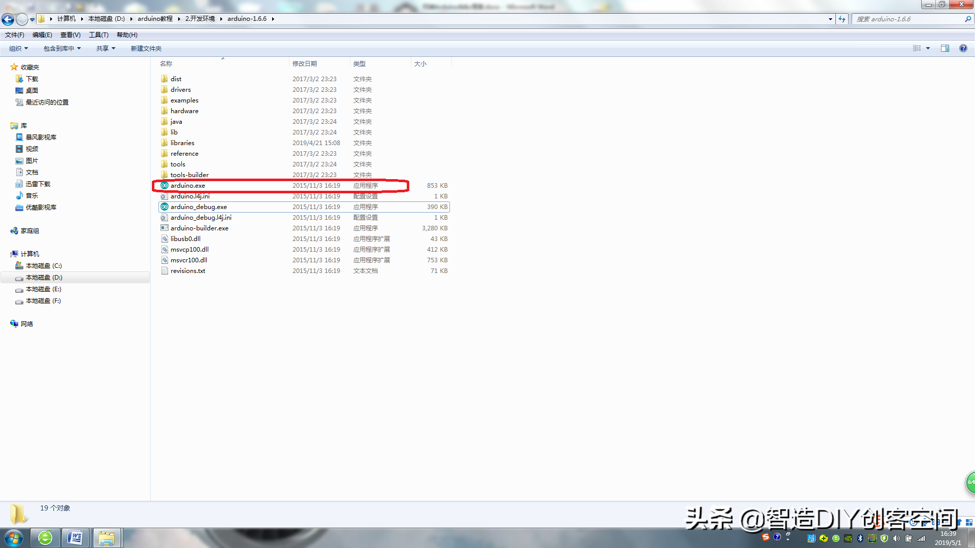 Arduino IDE就是我们进行编程的软件平台,我们可以在网络上免费下载获取,下载到的程序包有两种,一种是需要解压安装的,而另一种则只需要解压即可。在安装或者解压文件的根目录里面,我们可以找到名为“drivers”文件夹,里面包含了一些USB转串口的驱动文件,也就是上面第“9”部分提到的转换芯片对应的驱动文件,他们要与电脑建立通讯连接需要在电脑中安装驱动。这个文件夹里包含所有“官方”板所需的驱动文件,如果使用改进型的板子,如CH340芯片,则需自行下载CH340的驱动文件。在根目录里,我们可以找到如下图的图标: