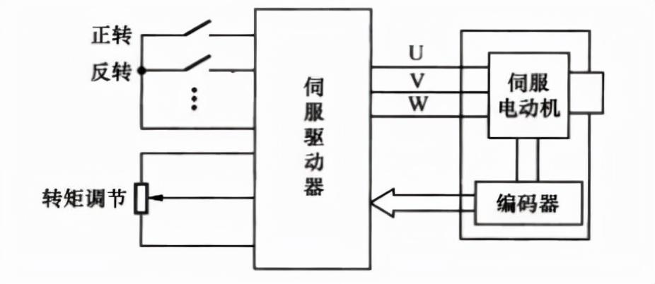 当交流伺服系统工作在转矩控制模式时,伺服驱动器无需输入脉冲信号也可正常工作,故可以取消伺服控制器,通过操作伺服驱动器的输入电位器,可以调节对的输出转矩。