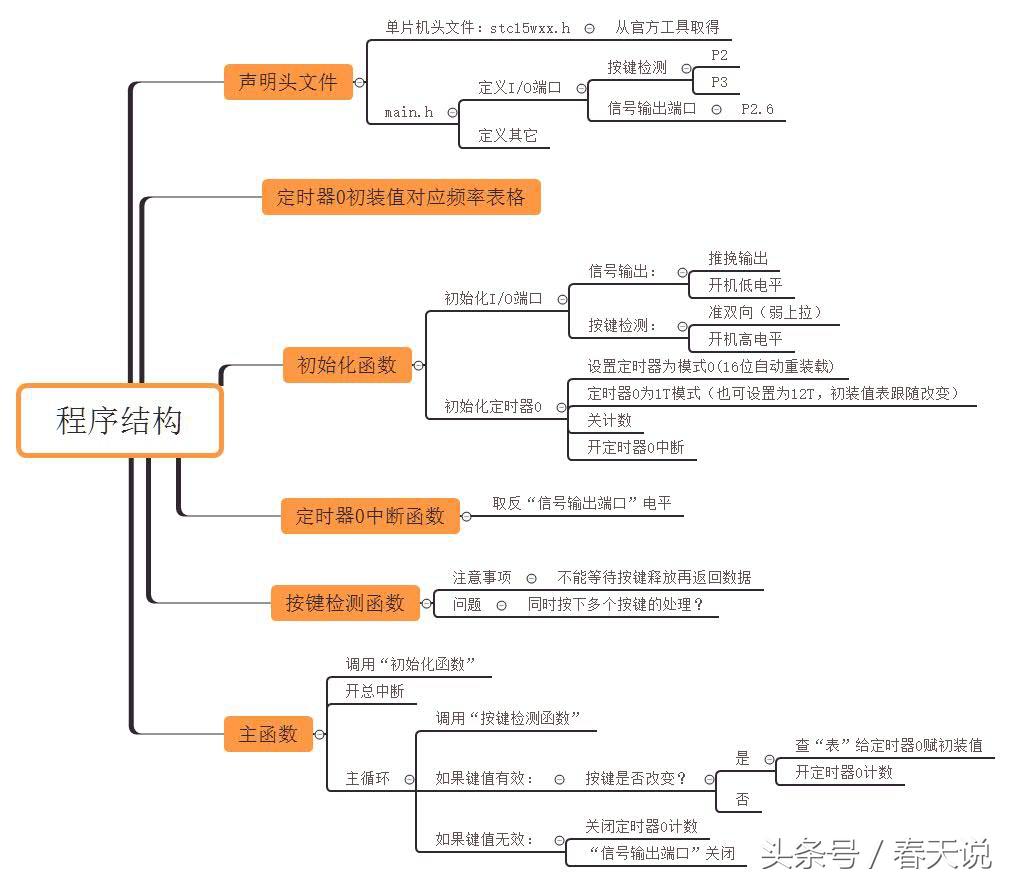 这里采用c语言编写单片机程序。在编程之前先来分析一下程序的组成部分: