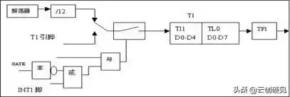 计数脉冲要进入计数器还真不不难,有层层关要通过,最起码,就是TR0(1)要为1,开关才能合上,脉冲才能过来。因此,TR0(1)称之为运行控制位,可用指令SETB来置位以启动计数器/定时器运行,用指令CLR来关闭定时/计数器的工作,一切尽在自已的掌握中。