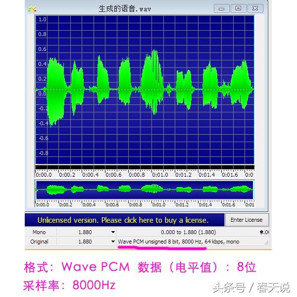 下图是用音频软件打开的音频文件截图(用话筒录制的):