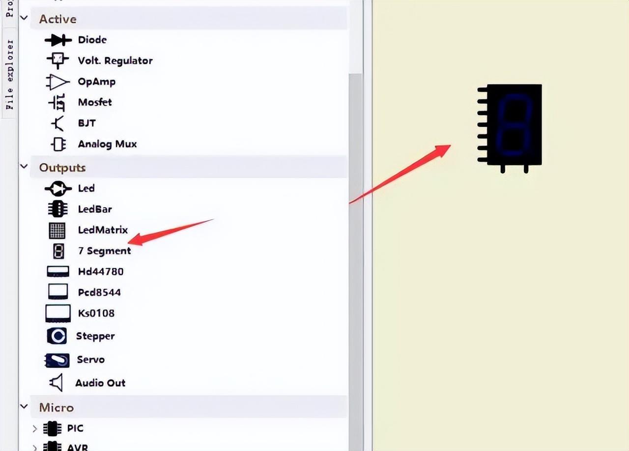 有2种七段的SimulIDE:-正常8 7SEG引脚。