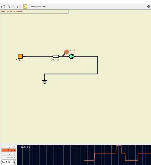 这是一个电压探头,让你在电路中的任何电线或引脚电压认识。它可以作为一种数字探头以及当发现了一个“高态”(> 2.5V)变为橙色。读取电压:悬停探头通过导线或引脚看到的电压在电路中的任何点。