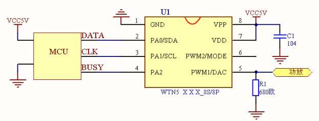 这种芯片如果语音少的直接用芯片内部的Flash,如果语音多了就需要外挂一个Flash来存储语音数据。